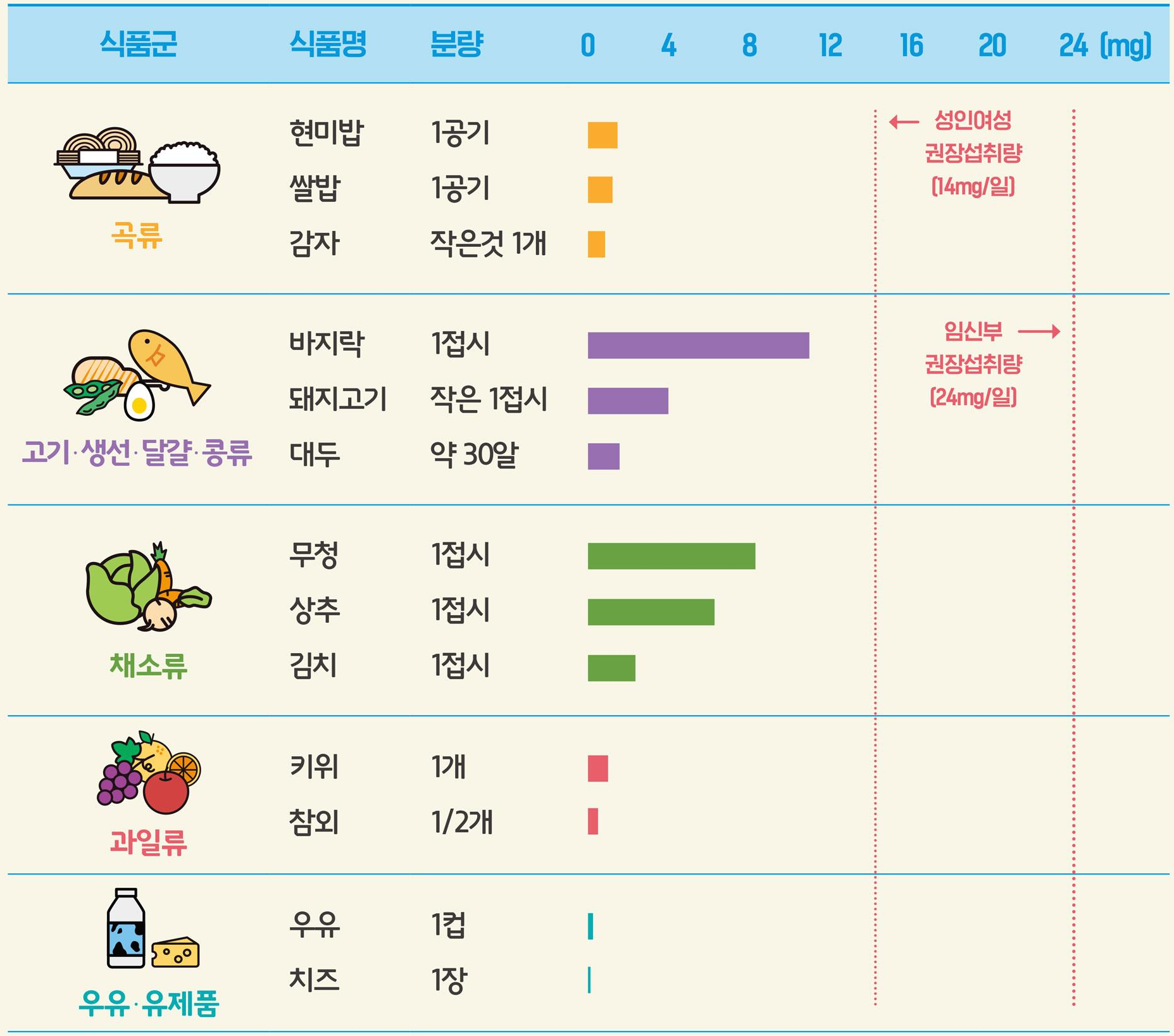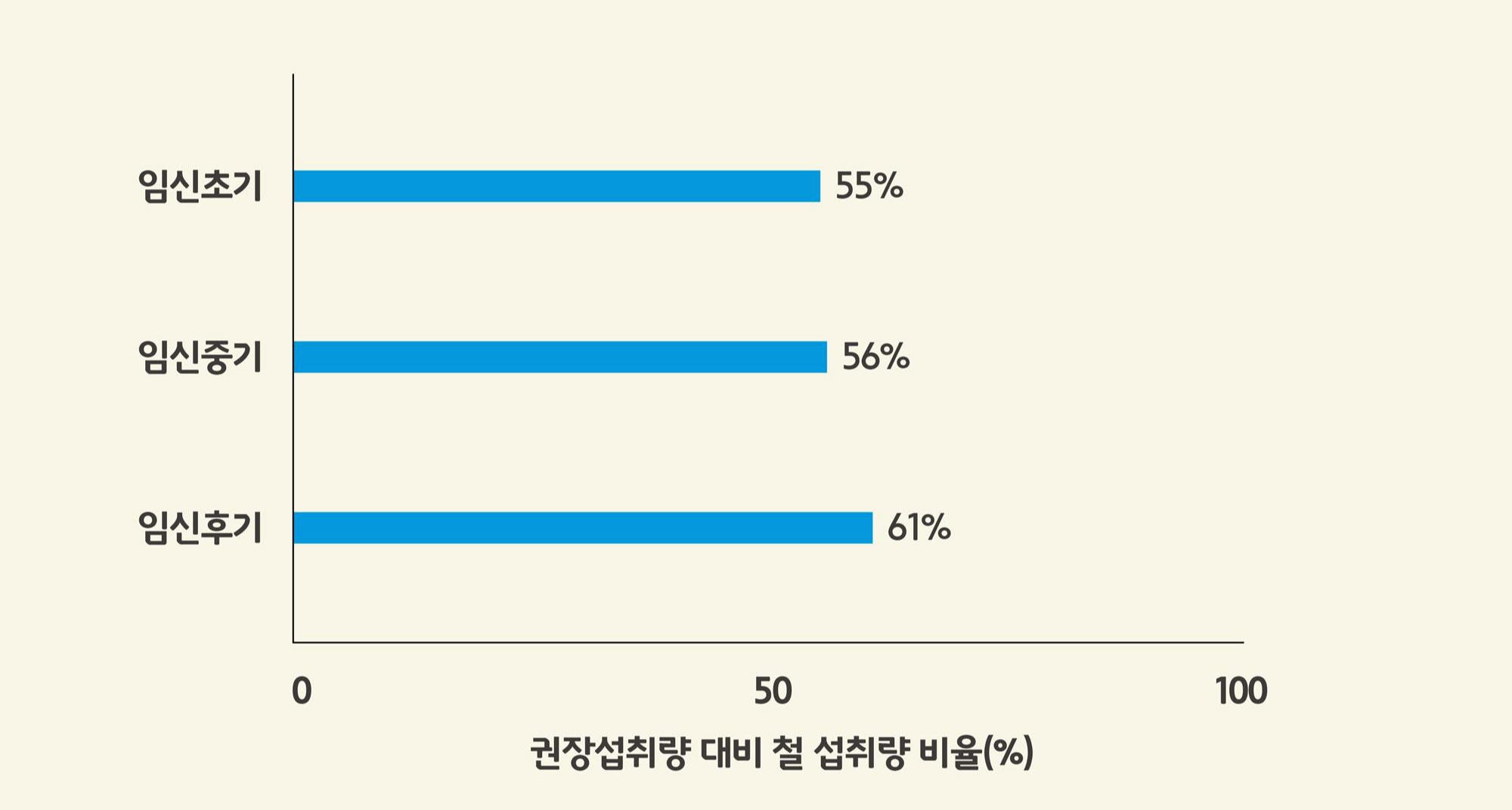 그런데 한국 임신부의 철분 섭취량은 권장량의 60%에 불과하다고 해요.