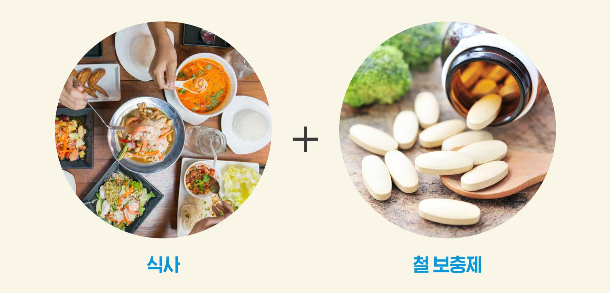 임신 중기 이후에는 식사만으로 24mg 채우기 어렵습니다. 이럴 땐 철분 보충제를 함께 먹어야 해요. 단, 철분제를 먹을 땐 하루 45mg을 넘기지 않도록 주의!